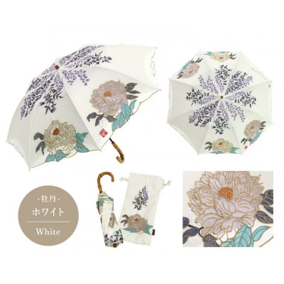 22【シノワズリーモダン京都】Ki-yanオーガンジーカットワーク刺繍折りたたみ日傘 牡丹・ホワイト