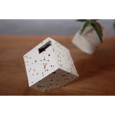 存在感のある手作り陶器製の花器。白と黒のリバーシブルです。オブジェのような花器です。