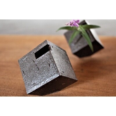 存在感のある手作り陶器製の花器(黒)。お花がなくてもオブジェとして和、洋どちらのインテリアにも馴染みます。