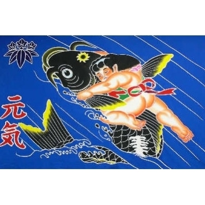 9高知特産 手染め祝旗 110×150cm 金太郎と鯉「フラフ」