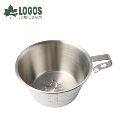 LOGOSのメモリ付きラージサイズシェラカップ。直火OKで500mlと深型。ステンレス製で錆びにくい