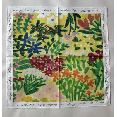 手描きの美しいデザイン、大判コットン100%のハンカチ