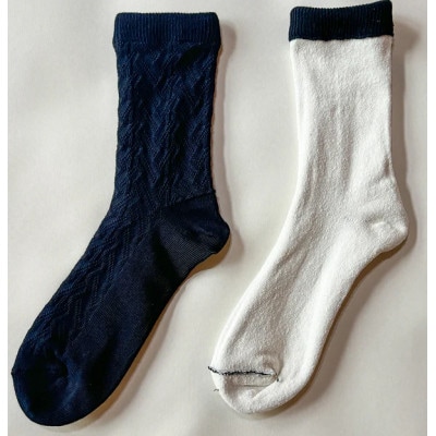 【ezu】ひえとりくつした 薄手/マリンブルー◆シルク×コットンの二重構造靴下◆ジャガード編み