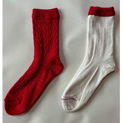 【ezu】ひえとりくつした 薄手/レッド◆シルク×コットンの二重構造靴下◆ジャガード編み