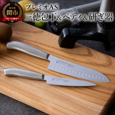22プレミオAS 包丁3点セット (三徳包丁 パン切り包丁 ペティナイフ) オールステンレス