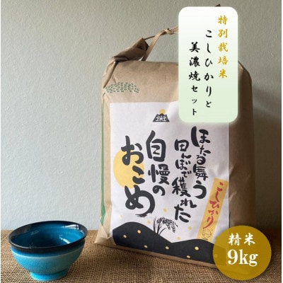 66【令和7年産:精米】特別栽培米コシヒカリ(9kg)+【美濃焼】青輝貫入湯呑(2個)
