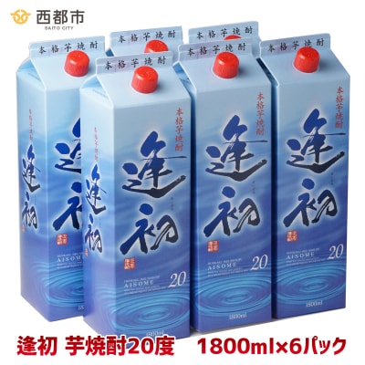 やまや蒸留所の芋焼酎「逢初」20度の1800mlパック×6本のセットです