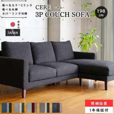 36【開梱・設置】3名掛け CERE 3Pカウチソファ 選べるカラー(Cランク)と脚部素材
