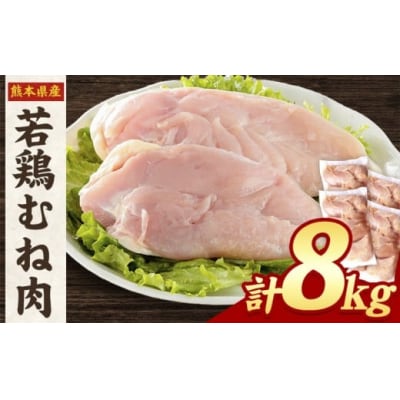 3熊本県産 若鶏むね肉 合計8kg(約2kg×4袋) 《30日以内に出荷予定(土日祝除く)》