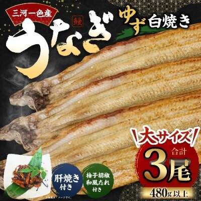 39三河一色産 うなぎ白焼き 大3尾 (ゆず胡椒和風たれ付き) お魚 湯煎 惣菜 セット 簡単調理 冷凍