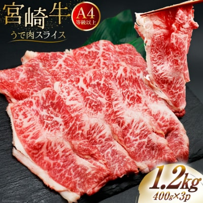 2肉 牛肉 ブランド牛 宮崎牛 牛うで肉 スライス 400g×3 計1.2kg [31bm0057]