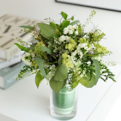 庭や野に咲く草花を摘んで束ねたようなラフなスタイルが、飾らない美しさ