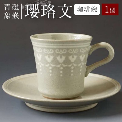 18青磁象嵌瓔珞文珈琲碗 せいじぞうがんようらくもん 焼き物 食器_038-6416