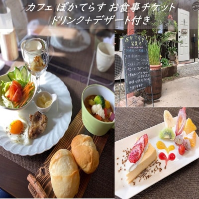 カフェ【ぽかてらす】のドリンク+デザート付きお食事券です。