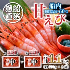 8海の上で食べる味!「共栄丸」直送☆船内瞬間冷凍 甘えび 約1.1kg [A-23103]