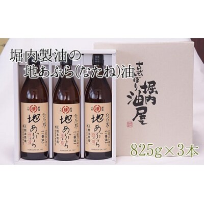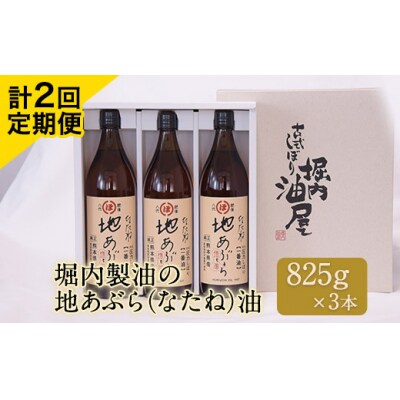 「堀内製油」の地あぶら(なたね油)825g×3本【定期便】計2回お届け