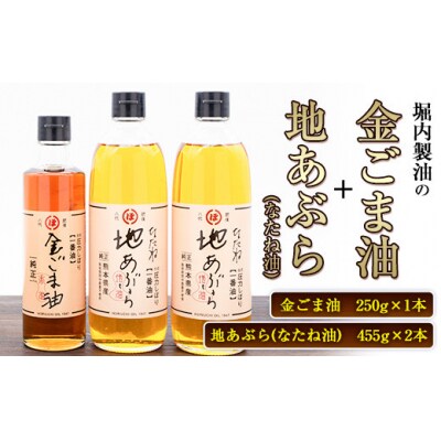 「堀内製油」の金ごま油250g+なたね油455g×2本セット 熊本県氷川町産