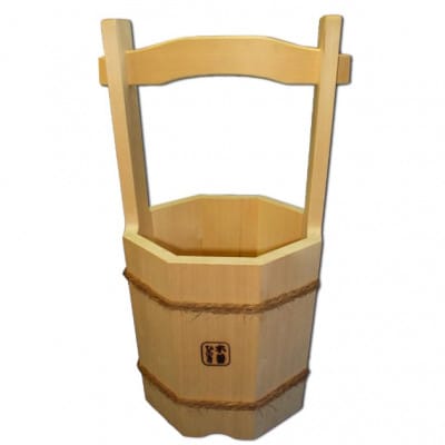 打ち水に最適 自然乾燥した天然木曽ひのきで作った木桶です