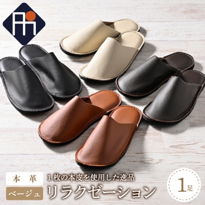 88【Lサイズ】本皮スリッパ「リラクゼーション」1足 ベージュ系