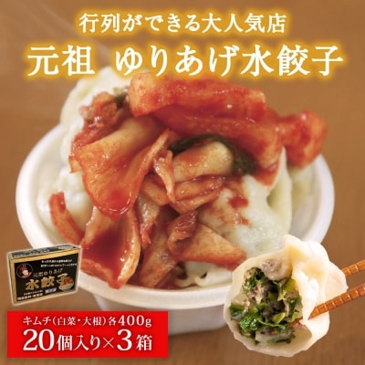 86ゆりあげ港朝市 名物!元祖 ゆりあげ水餃子 20個入り3箱と キムチ 2種セット