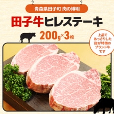 黒毛和種「田子牛」の希少部位!特上田子牛ヒレステーキ200g×3枚をお届けします。