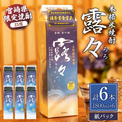 33本格米焼酎 露々20度 1800ml×6本(紙パック)