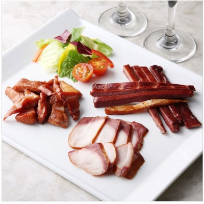 桜のチップでじっくりスモークした世にも珍しい魚のハムです。絶妙な風味と独特の食感をぜひご賞味ください
