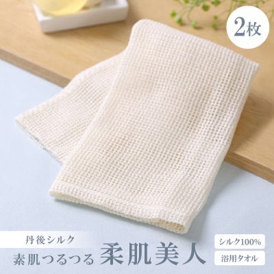 30シルク100%浴用タオル「素肌つるつる柔肌美人」×2枚 肌にやさしい絹で美容 お風呂でスキンケア