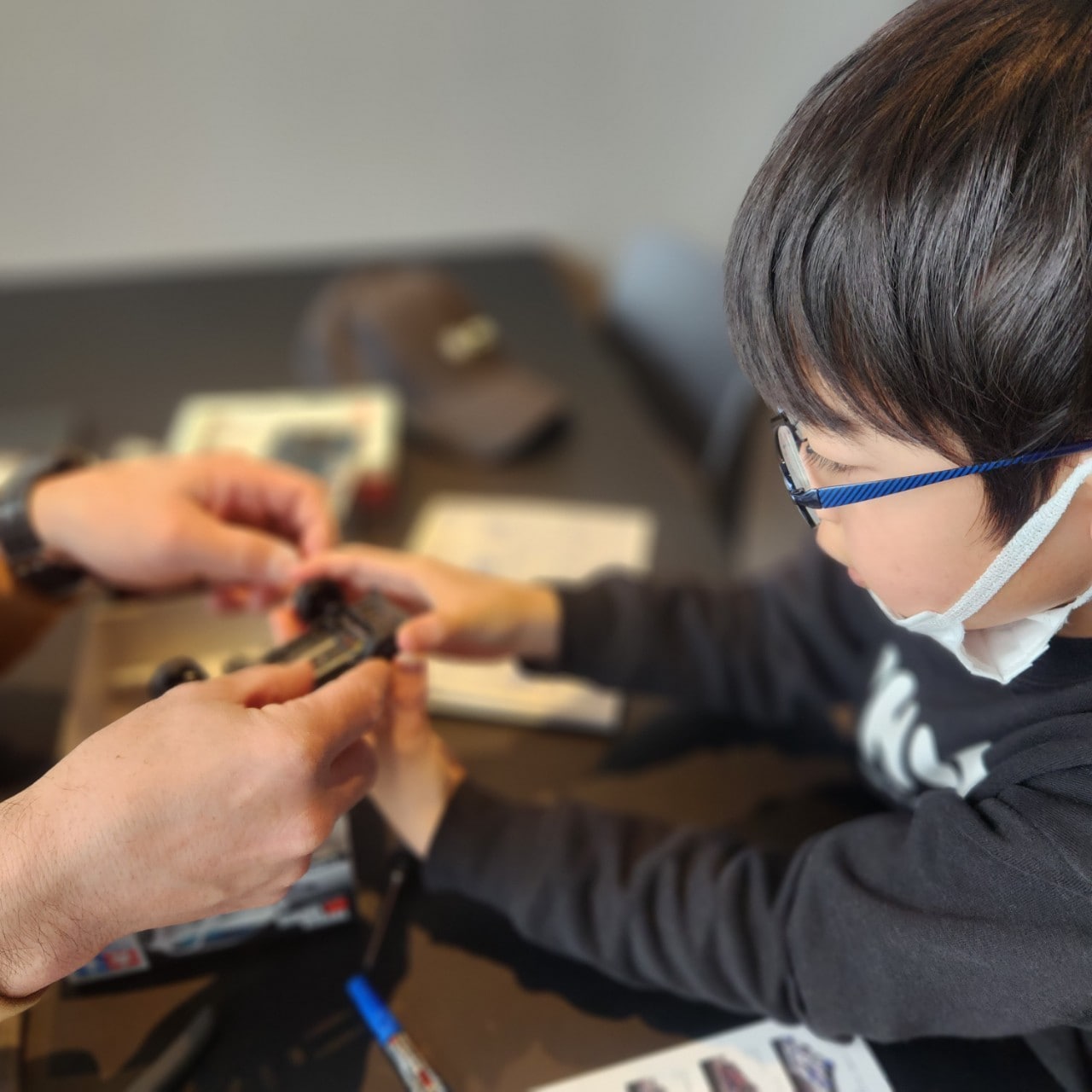 今回は、先ず、地域のファミリー対象に親子ミニ四駆体験教室で親子の親睦を図ってもらいます。工作後レース参戦してもらいます。