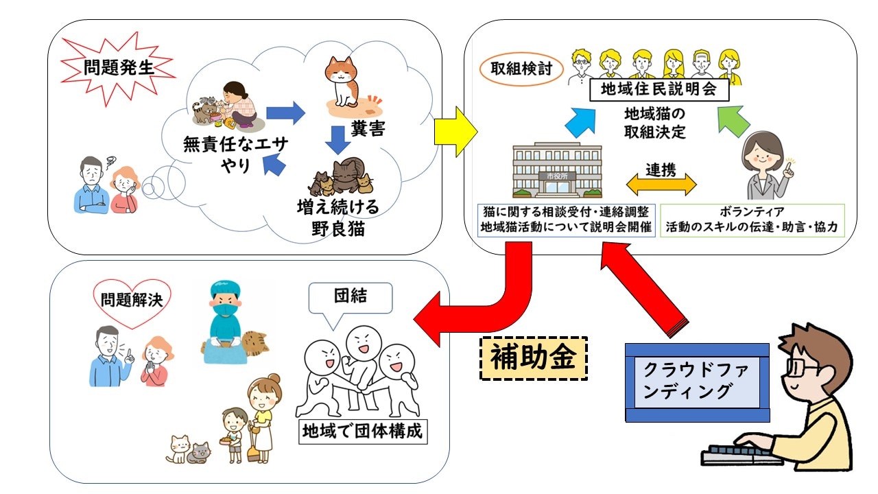 皆さまからいただいたご支援は「地域猫活動団体補助金」として活用され、