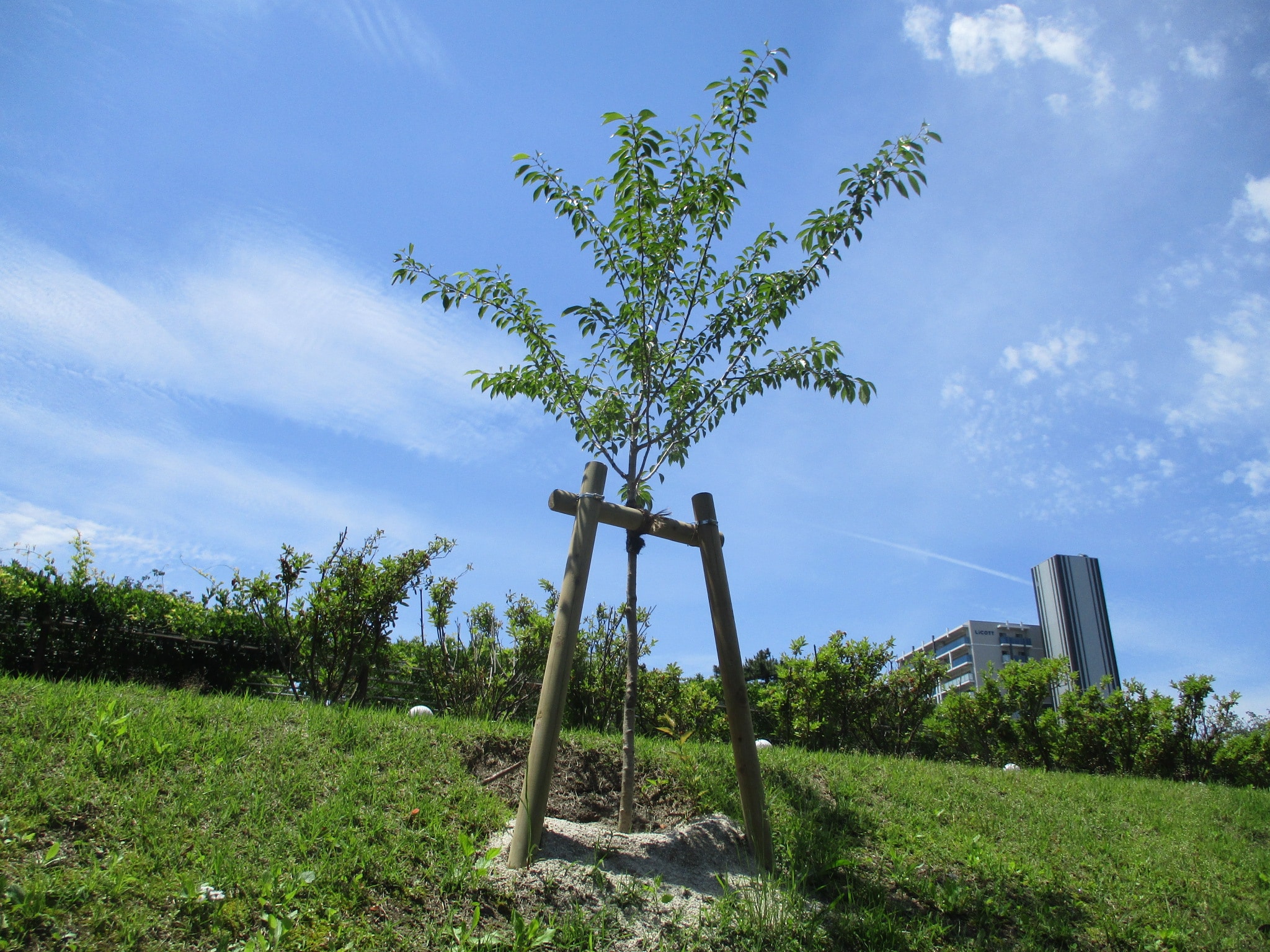 ←新たに植樹した若木に小さく芽吹いた桜。