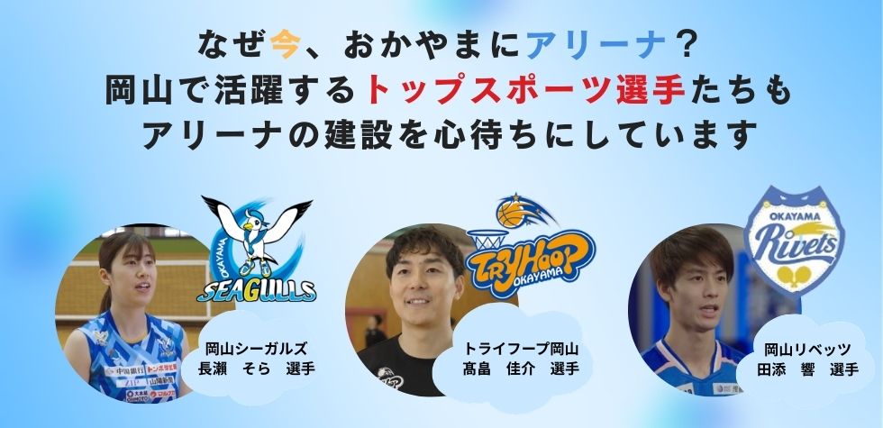 市内外の多くの皆様に応援いただき、岡山の未来を創り出すアリーナを皆様とともに実現したいと思っています。