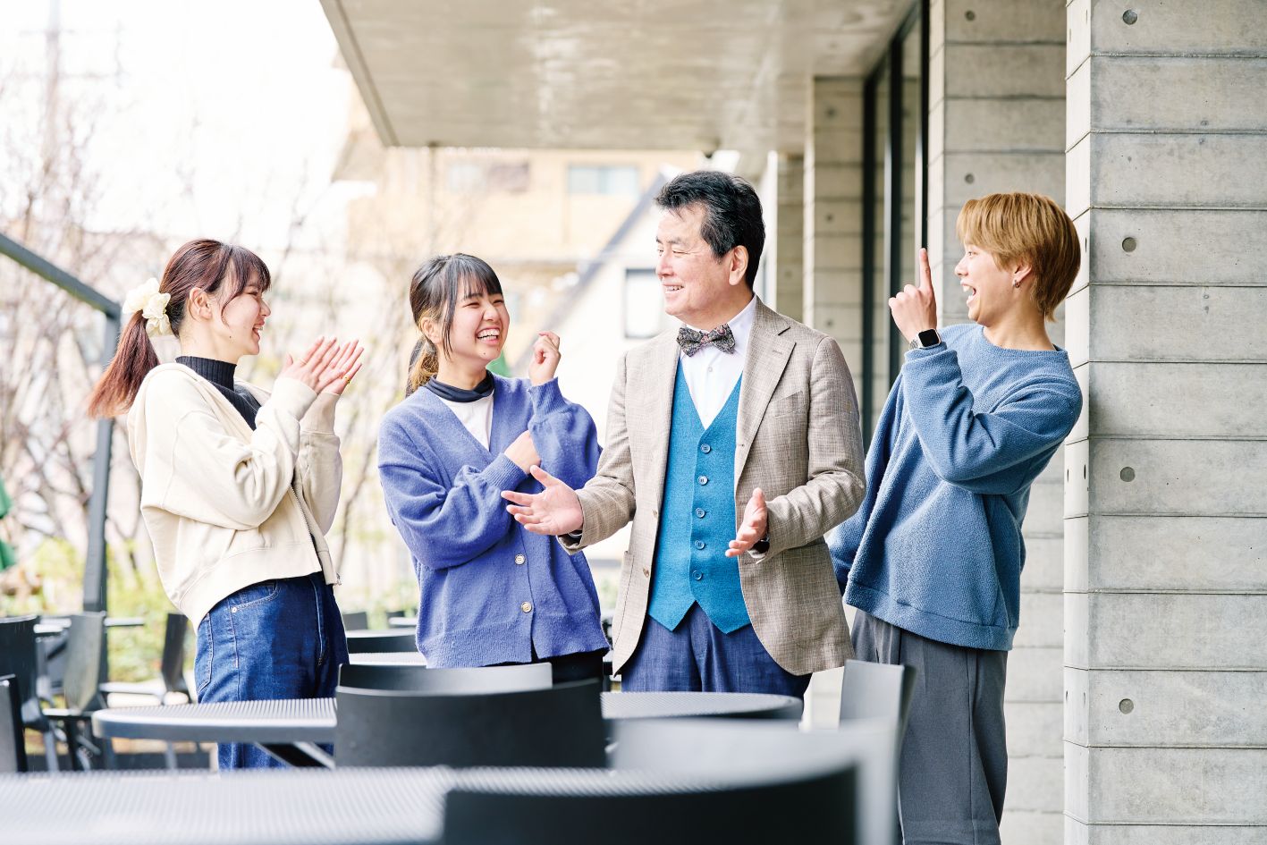 大手前大学が目指すのは、学生一人ひとりが自分らしい生き方を見つけ、同時に他者のウェルビーイングにも寄与できる精神を養うことです。
