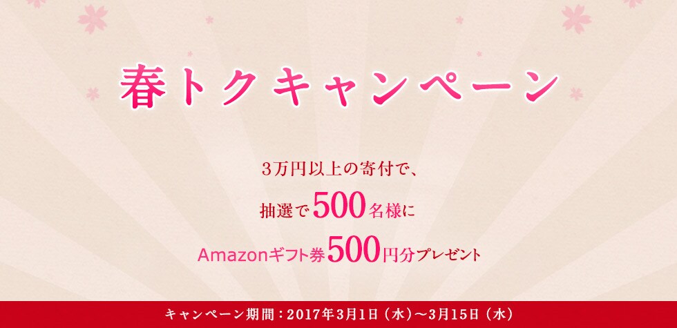 - ・法人名義での寄付は、このキャンペーンの対象外です。