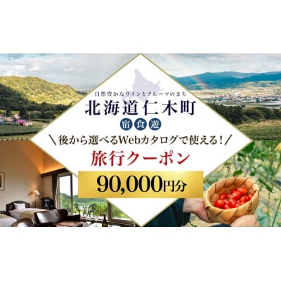 【北海道ツアー】仁木町 後から選べる旅行Webカタログで使える! 旅行クーポン(90,000円分) 果実とやすらぎの里 仁木町ステイを満喫! 旅行券 宿泊券 飲食券 体験サービス券