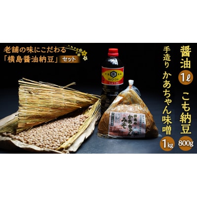 老舗の味にこだわる「横島醤油納豆」の醤油、手造りかあちゃん味噌、こも納豆セット [AO016ya]