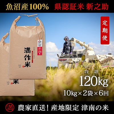 【毎月定期便】農家直送【特栽魚沼産新之助 精米 合計120kg】20kg(10kg×2袋 )全6回
