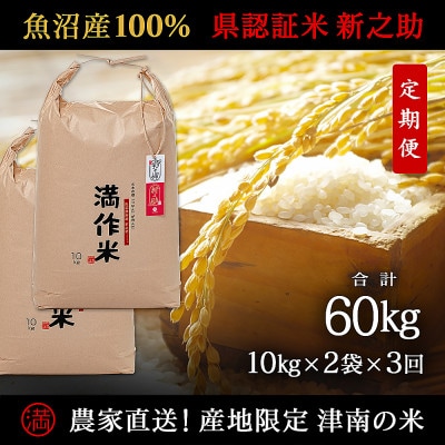 【毎月定期便】農家直送【特栽魚沼産新之助 精米 合計60kg】20kg(10kg×2袋 )全3回
