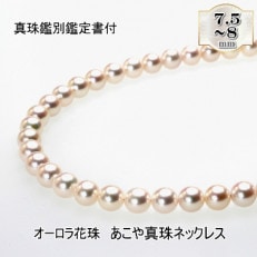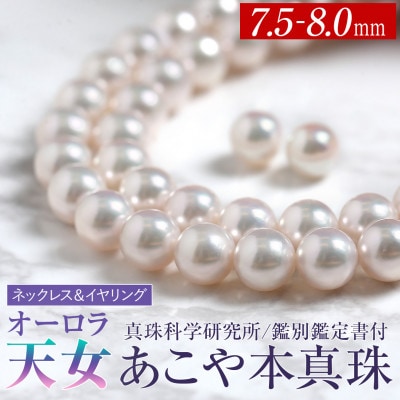 オーロラ天女 あこや真珠 7.5-8.0mm ネックレス イヤリング セット パール 鑑別鑑定書付