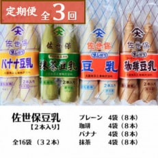 【毎月定期便】佐世保豆乳 4つの味セット(プレーン・珈琲・バナナ・抹茶/各4袋)全16袋全3回