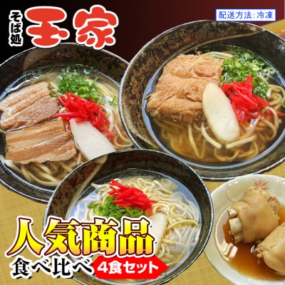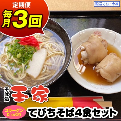 【定期便 毎月3回お届け】そば処玉家 てびちそば 各月4食セット 冷凍配送 沖縄そば専門店