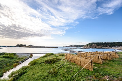 地域の有志が集い、田植えや収穫を共同で行っており、刈り取った稲の一部を浜や川沿いではざかけし、ゆっくりと天日干しする昔ながらの方法を採用しています。ほかにも、江の設置やふゆみずたんぼなどの取り組みを通じて、生物多様性に富んだ里山環境を守っています。