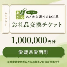 愛媛県愛南町のあとから選べるお礼品【お礼品交換チケット1,000,000円分】が付与されます。付与されたお礼品交換チケットは愛媛県愛南町が指定するお礼品と交換が可能です。