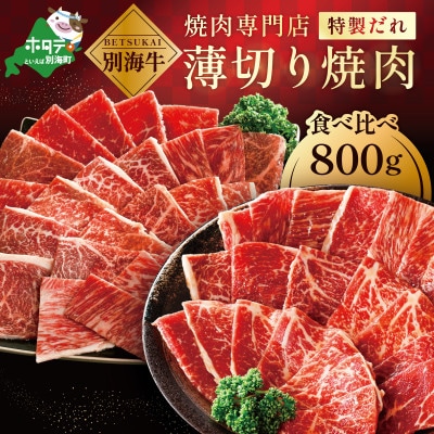 北海道 別海牛 味付け焼肉セット 800g 食べ比べ 薄切り 甘だれ 味噌だれ 訳あり 焼肉用牛肉