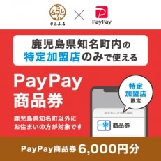 鹿児島県知名町 PayPay商品券(6,000円分)※地域内の一部の加盟店のみで利用可
