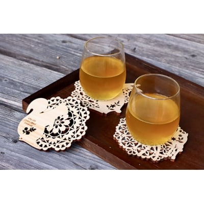 いの町が所有している森林(町有林)からの間伐材を加工した、オリジナルデザインの木製コースターと木製マグネットのセットです。