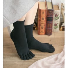 【婦人サイズ22~24cm/クルー丈/ブラック】五本指肌シルクソックス3足セット〈すべり止め有〉