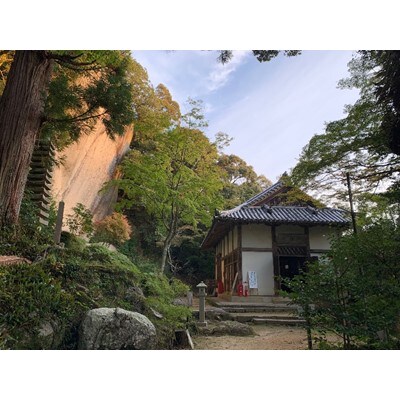 高さ15mの大きな岩に刻まれた日本最大級の「弥勒磨崖仏(みろくまがいぶつ)」や、山内には東大寺のお水取りの起源といわれる笠置寺本堂「正月堂」があります。巨石が点在する奈良時代からの修行場でもあります。笠置寺、笠置山全体は、国の史跡名勝です。