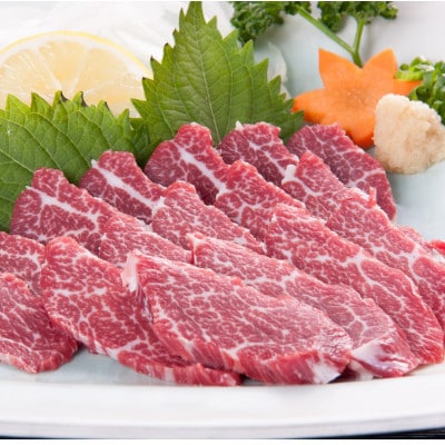 味わい濃厚なあか牛モモ肉の柔らかい部位を薄切りにした、あっさりとした召し上がりやすい一品です