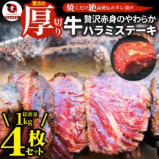 しゃぶまる特製 贅沢赤身 牛ハラミステーキ 4枚セット(合計1kg) 厚切り 秘伝のタレ漬け 焼く